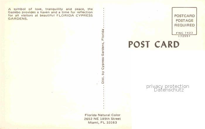 72900138 Miami Beach Florica Cypress Gardens postalisch nicht gelaufen Erhaltung siehe scans [LiesaD40] KatCode: 14140110000000