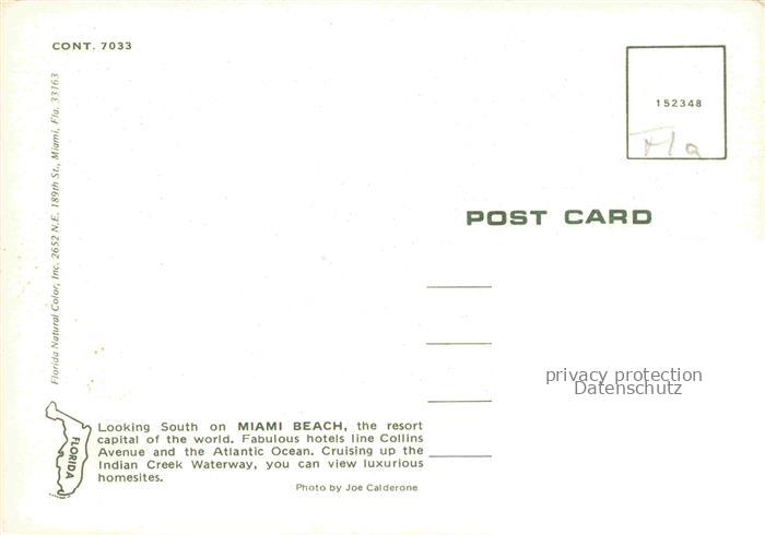 74091471 Miami Beach Florida USA Collins Avenue Indian Creek Waterway Fliegeraufnahme postalisch nicht gelaufen Erhaltung siehe scans [WerneD78] KatCode: 14140110000000