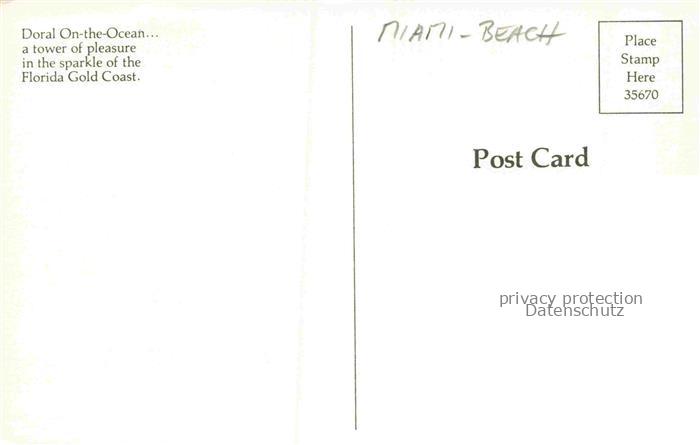 74141678 Miami Beach Florida USA Doral On the Ocean a tower of pleasure postalisch nicht gelaufen Erhaltung siehe scans [WerneD78] KatCode: 14140110000000