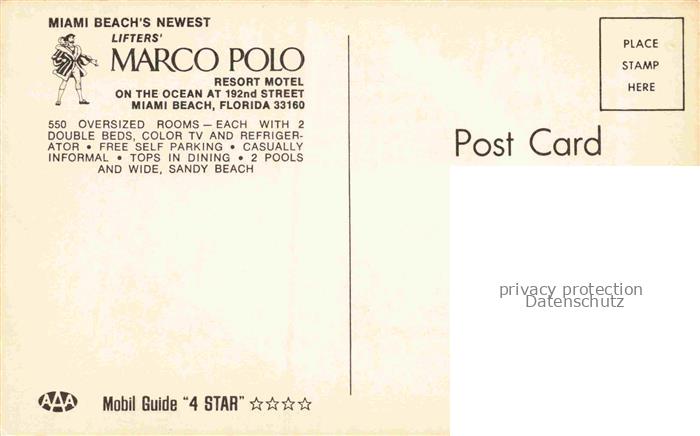 74131076 Miami Beach Florida USA Marco Polo Resort Motel postalisch nicht gelaufen Erhaltung siehe scans [IrynaD87] KatCode: 14140110000000
