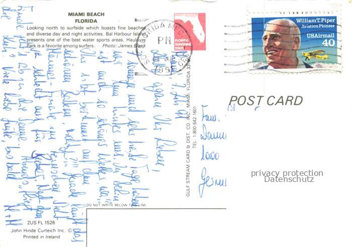74109852 old postcard Miami Beach Florida USA postalisch gelaufen Erhaltung siehe scans [IrynaD87] KatCode: 14140110000000