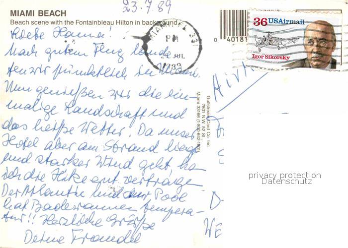 72795863 old postcard Miami Beach Fontainbeau Hilton postalisch gelaufen Erhaltung siehe scans [KathaD81] KatCode: 14140110000000