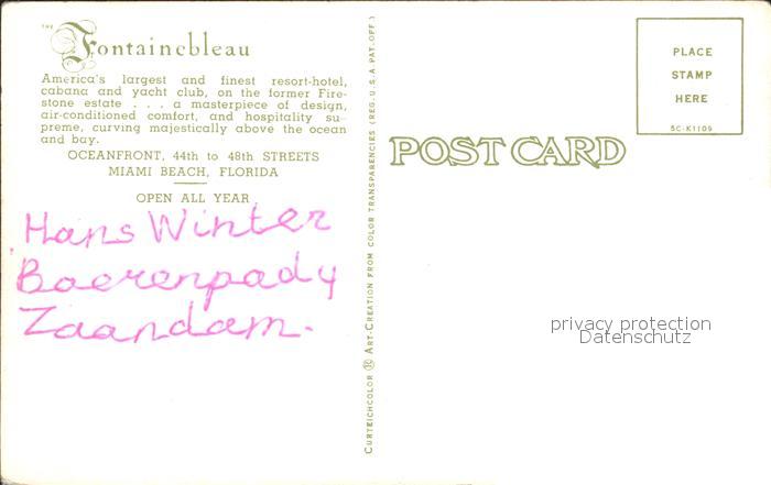 72172272 Miami Beach Fontainebleau postalisch nicht gelaufen Erhaltung siehe scans KatCode: 14140110000000