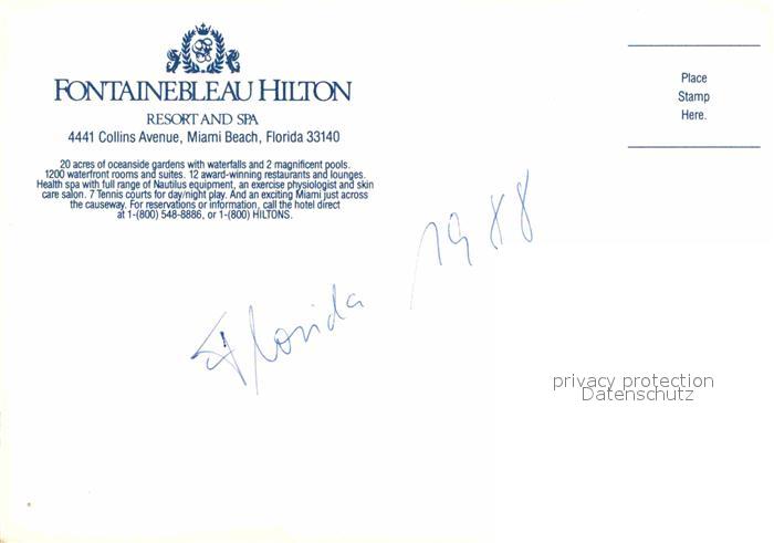 72667493 Miami Beach Fontainebleau Hilton postalisch nicht gelaufen Erhaltung siehe scans [AndreD76] KatCode: 14140110000000