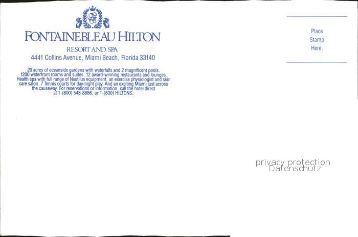 72417603 Miami Beach Fontainebleau Hilton postalisch nicht gelaufen Erhaltung siehe scans KatCode: 14140110000000