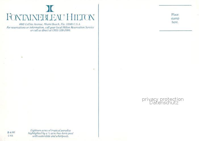 72953279 Miami Beach Fontainebleau Hilton Hotel Swimming Pool Beach postalisch nicht gelaufen Erhaltung siehe scans [FriedD77] KatCode: 14140110000000