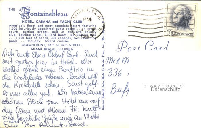 71953306 old postcard Miami Beach Fontainebleau Hotel postalisch gelaufen Erhaltung siehe scans KatCode: 14140110000000