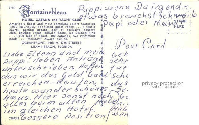71953292 Miami Beach Fontainebleau Hotel postalisch nicht gelaufen Erhaltung siehe scans KatCode: 14140110000000
