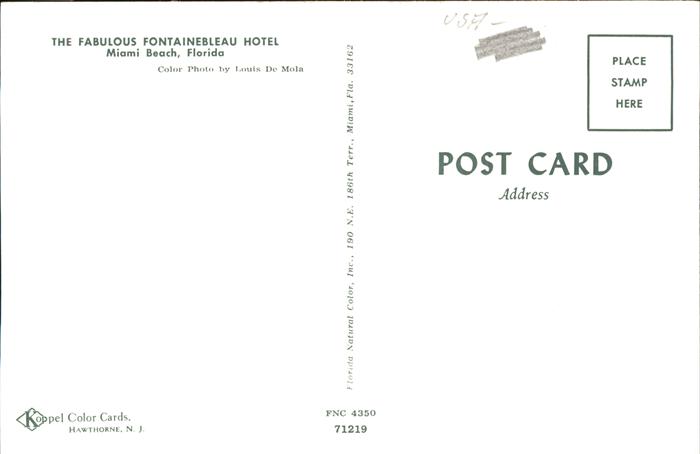 11491611 Miami Beach Fontainebleau Hotel aerial view postalisch nicht gelaufen Erhaltung siehe scans KatCode: 14140110000000