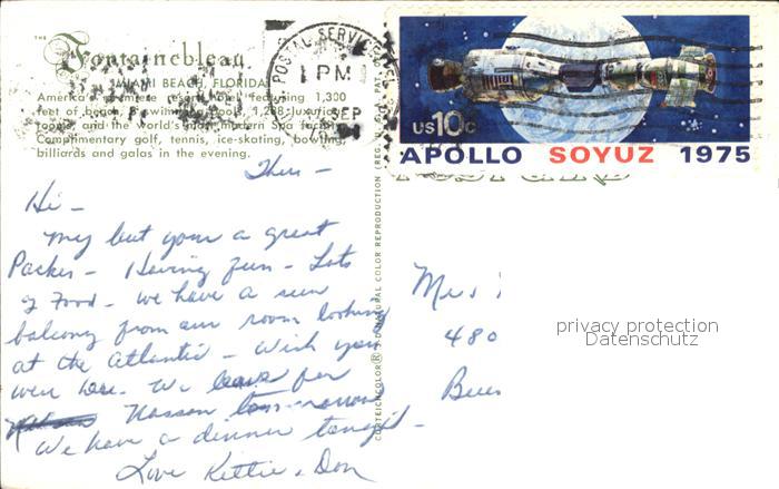 72486813 old postcard Miami Beach Fontainebleau Hotels Air view postalisch gelaufen Erhaltung siehe scans KatCode: 14140110000000