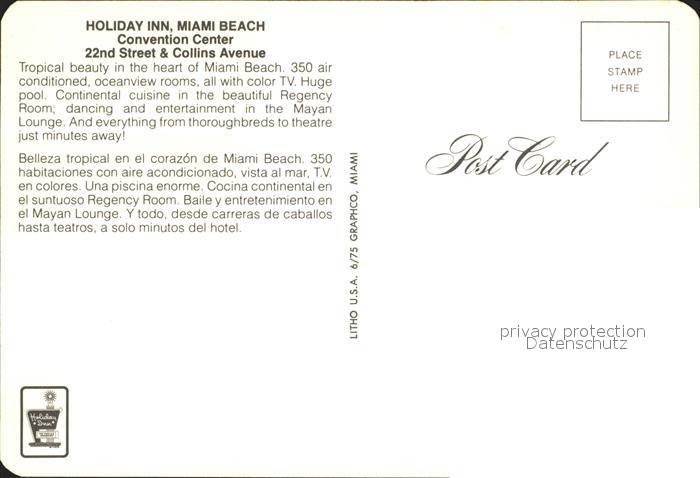 72011508 Miami Beach Holiday Inn Garten Dinner Panorama postalisch nicht gelaufen Erhaltung siehe scans KatCode: 14140110000000