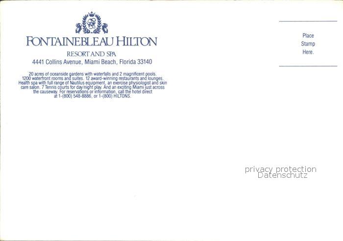 72069207 Miami Beach Hotel Fontainebleau Hilton postalisch nicht gelaufen Erhaltung siehe scans KatCode: 14140110000000