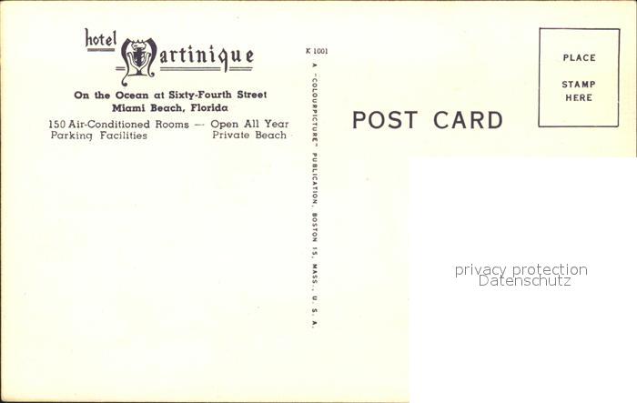 11688707 Miami Beach Hotel Martinique Swimming Pool postalisch nicht gelaufen Erhaltung siehe scans KatCode: 14140110000000