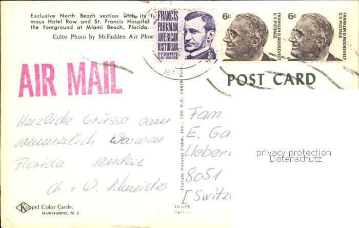 12557956 old postcard Miami Beach Hotel Row and St Francis Hospital postalisch gelaufen Erhaltung siehe scans [WerneD78] KatCode: 14140110000000