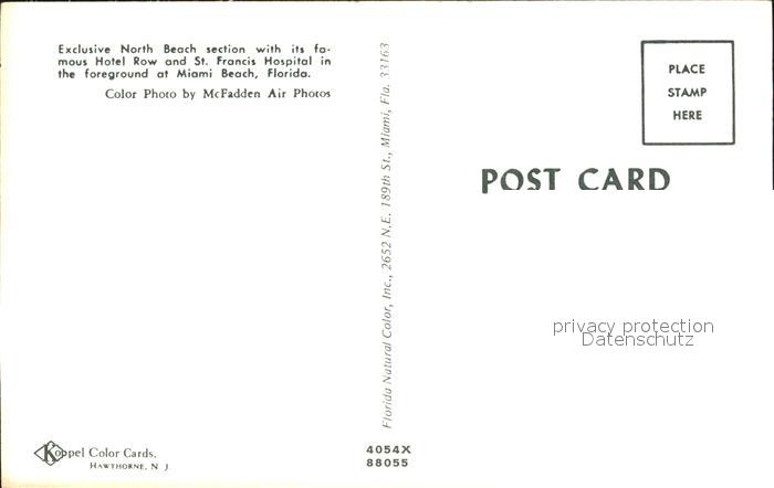 72228581 Miami Beach Hotel Row St Francis Hospital aerial view postalisch nicht gelaufen Erhaltung siehe scans KatCode: 14140110000000