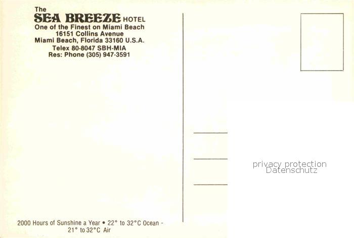 72881959 Miami Beach Hotel Sea Breeze postalisch nicht gelaufen Erhaltung siehe scans [AndreD76] KatCode: 14140110000000