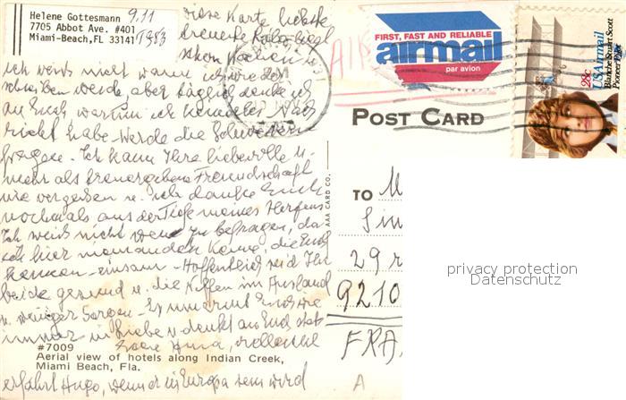 73057240 old postcard Miami Beach Hotels along Indian Creek postalisch gelaufen Erhaltung siehe scans [WerneD78] KatCode: 14140110000000