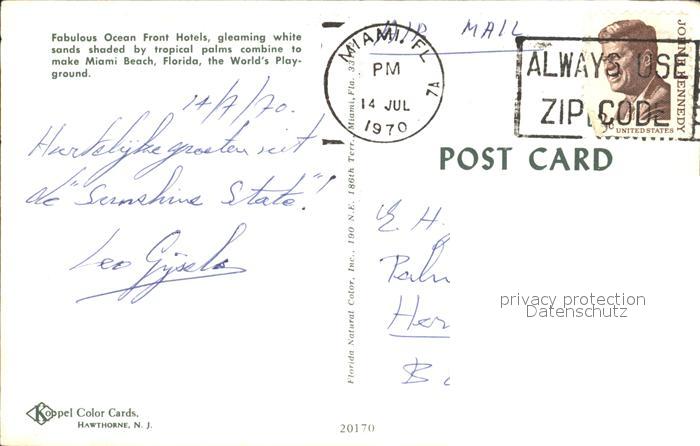72306155 old postcard Miami Beach Hotels and Beach postalisch gelaufen Erhaltung siehe scans KatCode: 14140110000000