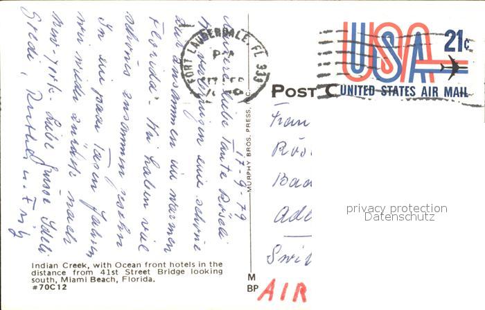 11686121 old postcard Miami Beach Indian Creek with Ocean Front Hotels postalisch gelaufen Erhaltung siehe scans KatCode: 14140110000000