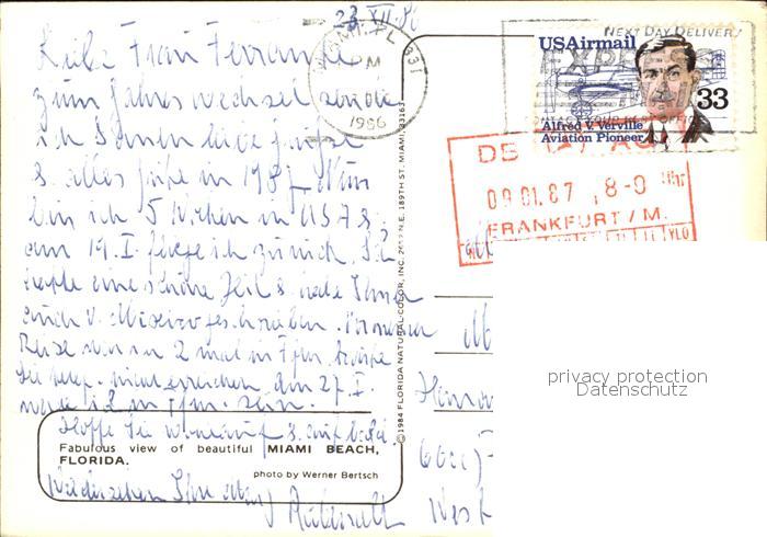 72457435 old postcard Miami Beach Luftaufnahme postalisch gelaufen Erhaltung siehe scans KatCode: 14140110000000