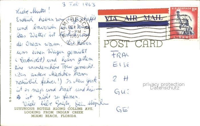 71954785 old postcard Miami Beach Luxusious Hotel postalisch gelaufen Erhaltung siehe scans KatCode: 14140110000000