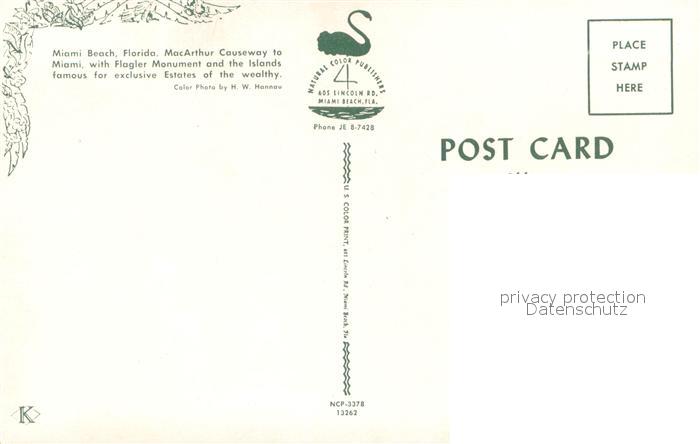 73706961 Miami Beach MacArthur Causeway to Miami with Flagler Monument and the Islands Aerial view postalisch nicht gelaufen Erhaltung siehe scans [WerneD78] KatCode: 14140110000000