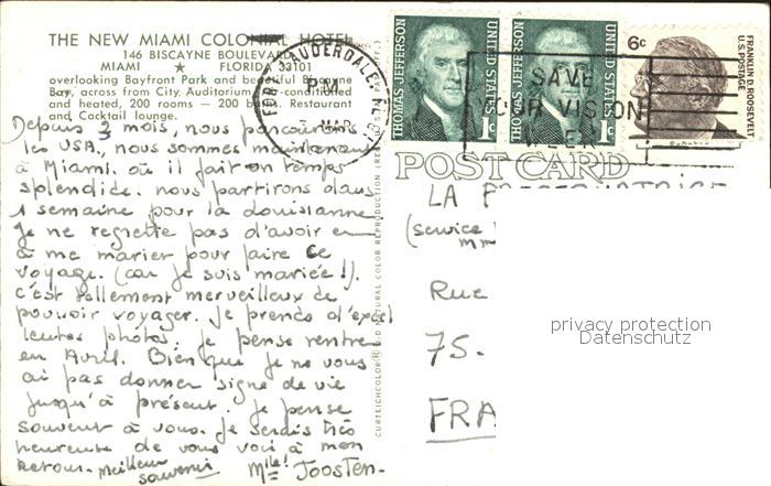 72232129 old postcard Miami Beach New Miami Colonial Hotel postalisch gelaufen Erhaltung siehe scans KatCode: 14140110000000