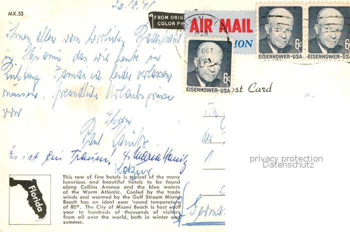72929368 old postcard Miami Beach Ocean Front Hotel postalisch gelaufen Erhaltung siehe scans [NatalD47] KatCode: 14140110000000