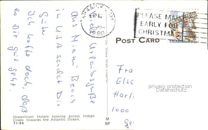 72161822 old postcard Miami Beach Oceanfront Hotels Indian Creek Atlantic Ocean postalisch gelaufen Erhaltung siehe scans KatCode: 14140110000000