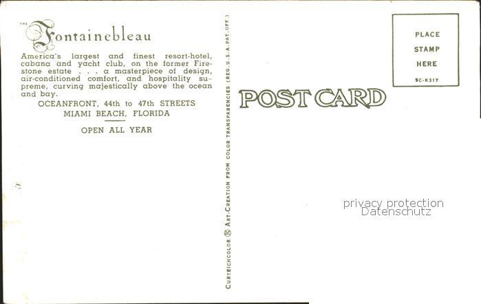 71953301 Miami Beach Resort Hotel Fontainebleau postalisch nicht gelaufen Erhaltung siehe scans KatCode: 14140110000000