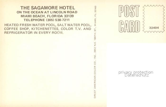 73126035 Miami Beach Sagamore Hotel on the Ocean Swimming Pool postalisch nicht gelaufen Erhaltung siehe scans [FriedD77] KatCode: 14140110000000