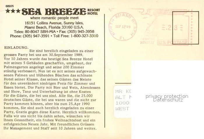 72950414 old postcard Miami Beach Sea Breeze Hotel postalisch gelaufen Erhaltung siehe scans [NatalD47] KatCode: 14140110000000