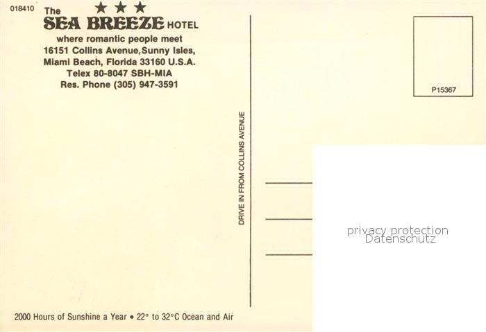 73116001 Miami Beach Sea Breeze Hotel postalisch nicht gelaufen Erhaltung siehe scans [KathaD81] KatCode: 14140110000000
