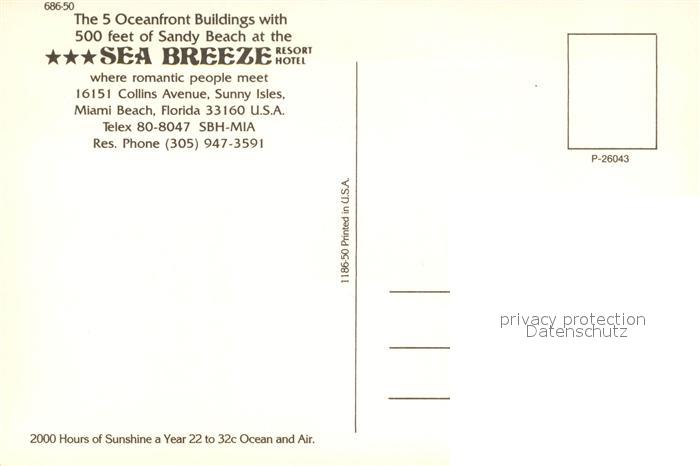73173904 Miami Beach Sea Breeze Resort Hotel postalisch nicht gelaufen Erhaltung siehe scans [NatalD47] KatCode: 14140110000000