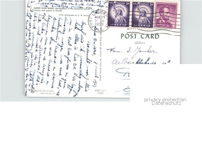 72493360 old postcard Miami Beach Sunset Over postalisch gelaufen Erhaltung siehe scans KatCode: 14140110000000