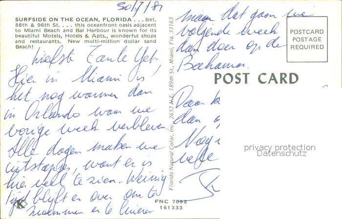 72232121 Miami Beach Surfside on the Ocean postalisch nicht gelaufen Erhaltung siehe scans KatCode: 14140110000000