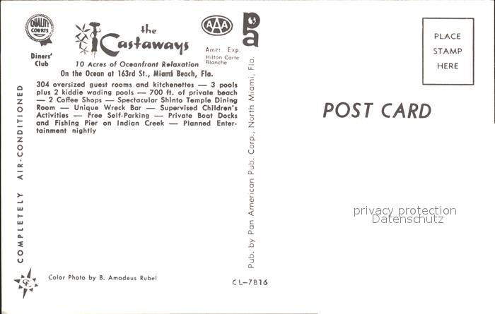 72219211 Miami Beach The Castaways postalisch nicht gelaufen Erhaltung siehe scans KatCode: 14140110000000