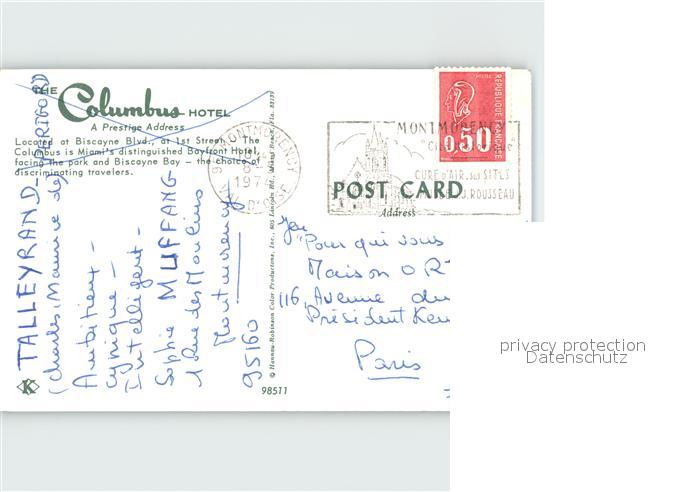 72077096 old postcard Miami Beach The Columbus Hotel postalisch gelaufen Erhaltung siehe scans KatCode: 14140110000000