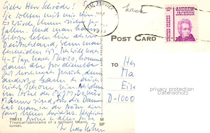 73003063 old postcard Miami Beach Tropical panorama of Miami sunset postalisch gelaufen Erhaltung siehe scans [WerneD78] KatCode: 14140110000000