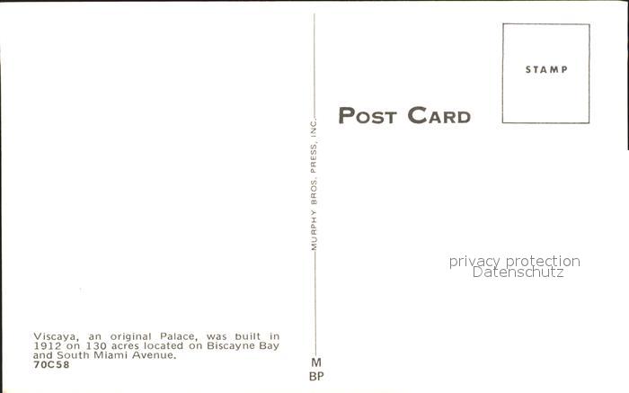 71954689 Miami Beach Viscaya postalisch nicht gelaufen Erhaltung siehe scans KatCode: 14140110000000