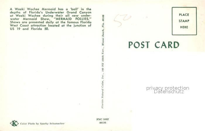 73123495 Miami Beach Weeki Wachee Mermaid Floridas Underwater Grand Canyon Mermaid Show Mermaid Follies postalisch nicht gelaufen Erhaltung siehe scans [FriedD77] KatCode: 14140110000000