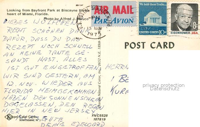 73308108 old postcard Miami Florida Biscayne Blvd postalisch gelaufen Erhaltung siehe scans [NatalD47] KatCode: 14140110000000