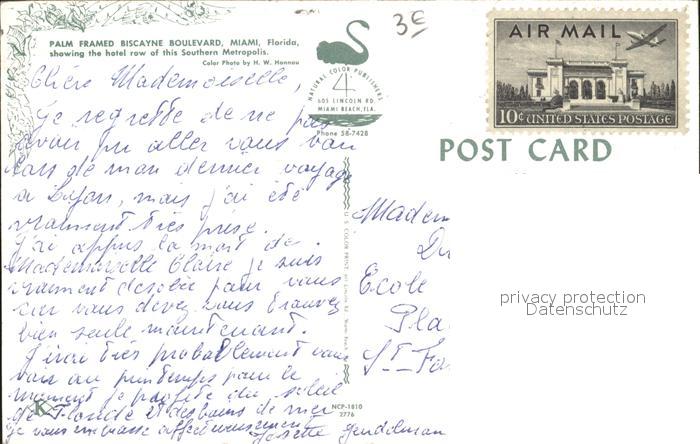 72246392 old postcard Miami Florida Biscayne Boulevard postalisch gelaufen Erhaltung siehe scans KatCode: 14140110000000