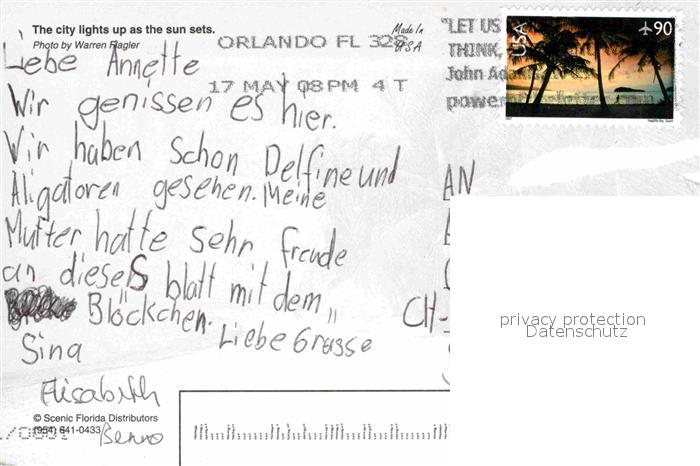 72721756 old postcard Miami Florida City lights Nacht postalisch gelaufen Erhaltung siehe scans [KathaD79] KatCode: 14140110000000