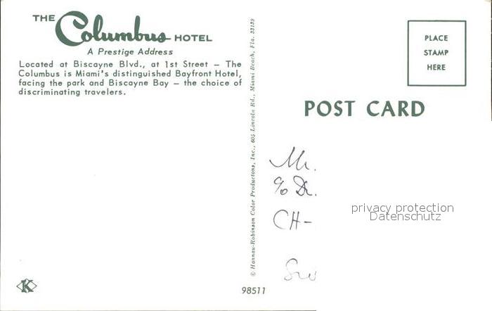 11688483 Miami Florida Columbus Hotel postalisch nicht gelaufen Erhaltung siehe scans KatCode: 14140110000000