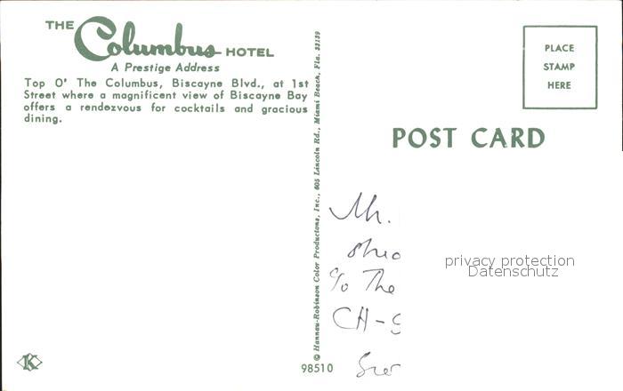 11688481 Miami Florida Columbus Hotel Restaurant postalisch nicht gelaufen Erhaltung siehe scans KatCode: 14140110000000