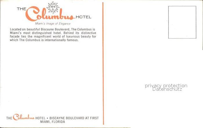 72054945 Miami Florida Columbus Hotel postalisch nicht gelaufen Erhaltung siehe scans KatCode: 14140110000000