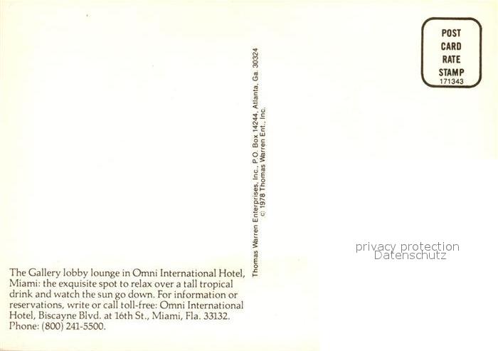 73173902 Miami Florida Gallery lobby lounge Omni International Hotel postalisch nicht gelaufen Erhaltung siehe scans [NatalD47] KatCode: 14140110000000