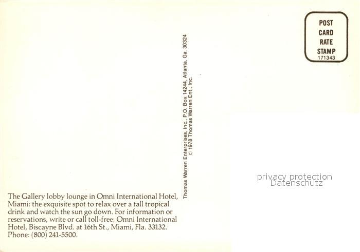 73173900 Miami Florida Gallery lobby Omni International Hotel postalisch nicht gelaufen Erhaltung siehe scans [NatalD47] KatCode: 14140110000000