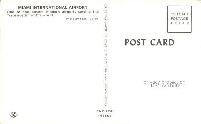 72124495 Miami Florida Miami International Airport postalisch nicht gelaufen Erhaltung siehe scans KatCode: 14140110000000